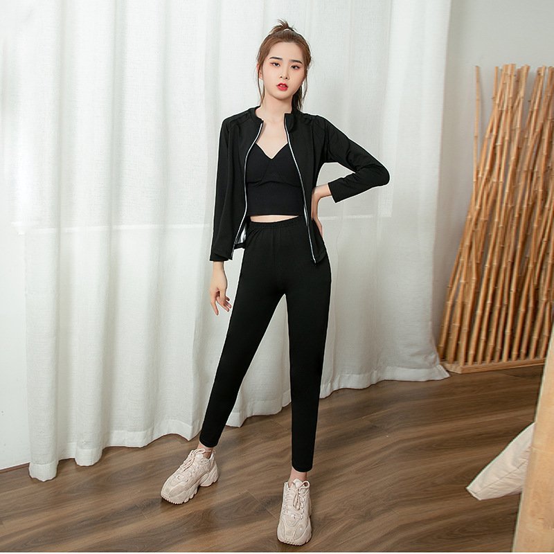 Sweat suit women’s stand collar jacket sports yoga top long sleeve jacket reflective zipper training fitness clothes women